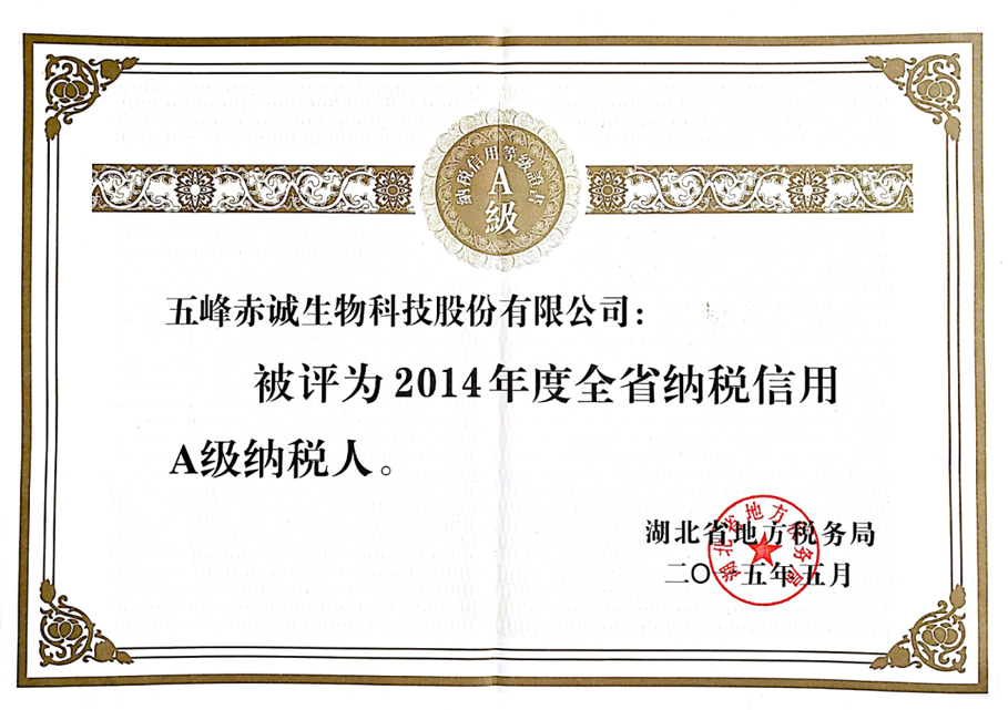 Provincial and local Taxes Grade A taxpayer in 2015
