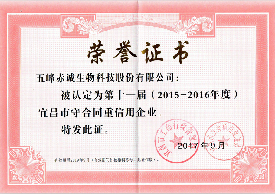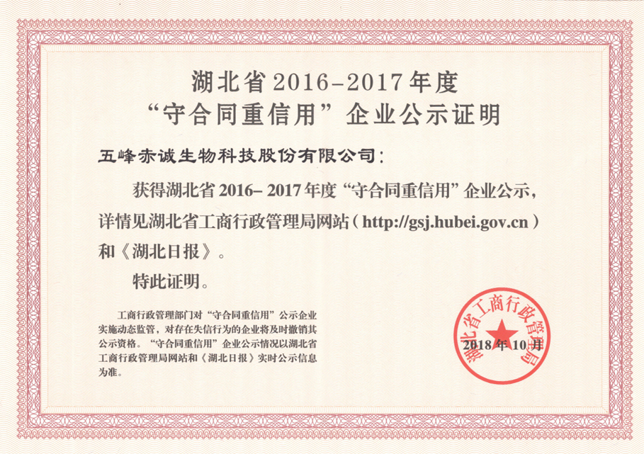 2018.10 Hubei Province 2016-2017 "abide by the contract and attach great importance to credit" enterprise public certificate